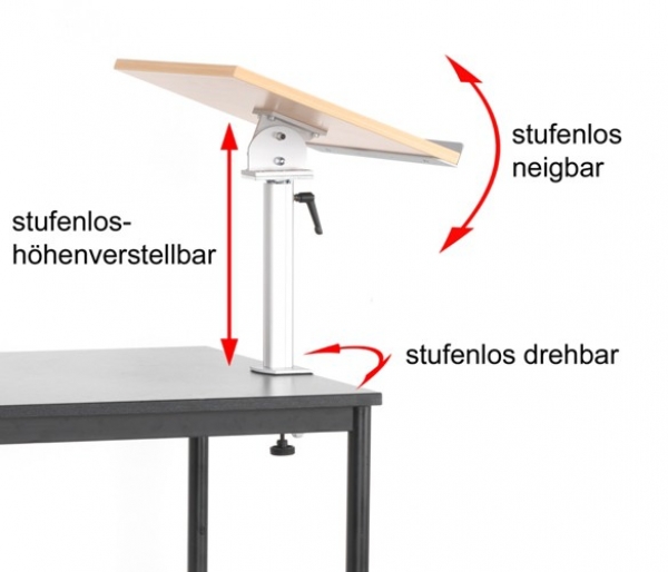 - Arbeitsplatte stufenlos neigbar 0 – 85°