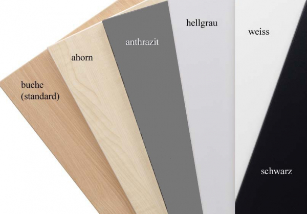 - Arbeitsplatte aus 19mm melaminharz beschichteter Spanplatte mit PVC Umleimer mit ergonomischen Ausschnitt