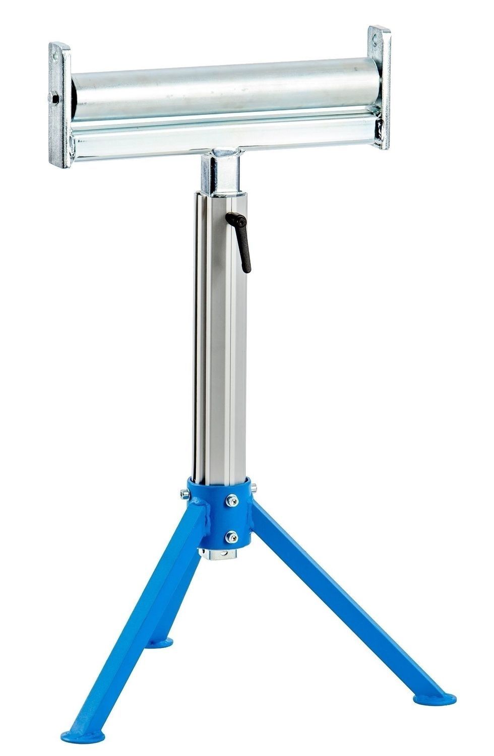 Höhenverstellbarer Materialständer mit Stahl-Tragrolle, Klemmsystem und Dreibein-Untergestell – Ideal auch für den mobilen Einsatz – Made in Germany