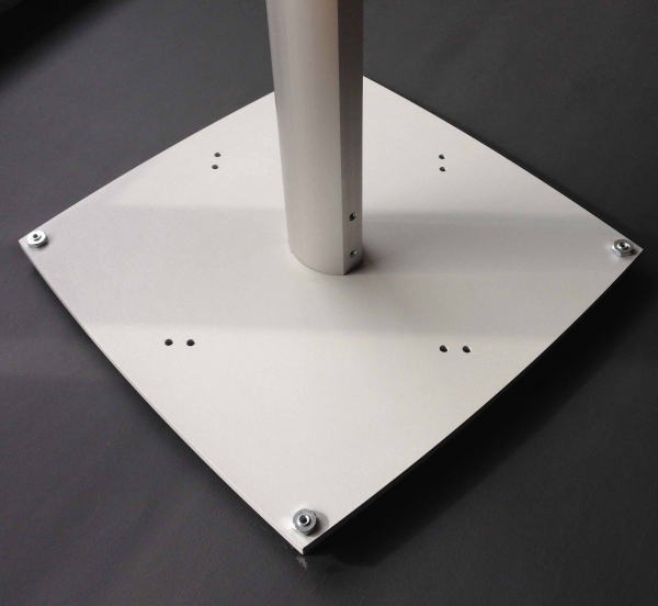 - Bodenplatte Stahl 420 x 420 x 10 mm mit 4 äußeren Aufnahmepunkten und Bodenausgleichsschrauben